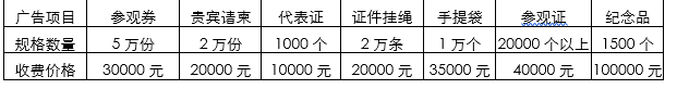 C. 参展单位会务费:800元/人,包括证件、礼品、午餐、饮料,协助代订宾馆、车票、飞机票等(注:此项服务不包含参会名额)。 4、展会会刊: 注:会刊版面规格(142.5 mm×210mm)、进口铜版纸、四色精印,版面内容由展商自行设计。 5、其他广告(以下各项为独家赞助): 六、全方位、战略性的观众组织方案为您带来丰富的客户资源 1、邀请全国各省市政府主管部门及行业协会、学会组织其会员单位到会参观; 2、邀请各省市电力公司、地方独立电力公司、输配电公司、变电站、电力通信管理、电力工程设计与施工单位、电力能源集团、投融资公司、铁路/ 轨道交通、工业/ 商业园区、工矿企业等专业观众到会参观洽谈; 3、央视13频道、新浪网、搜狐网、凤凰网、光明网、网易新闻、中国网、中国经济网、今日头条、国家电网报、中国电力报、齐鲁晚报、重庆晚报、华晨商报等100 余家专业网站、报刊、杂志等媒体重点宣传和报道展览会的信息,与各专业媒体达成互动联盟,对展会进行全力宣传与推广,吸引更多领域的专业观众群体到会参观、交流、选购。 九、相关服务 1、协助安排境外企业展品运输、报关; 2、为参展代表提供便捷的服务,协助参展代表订宾馆、返程车票、机票; 3、协助参展单位举办各种形式新闻发布会、产品项目推广会、专题报告会和技术讲座等活动;