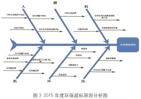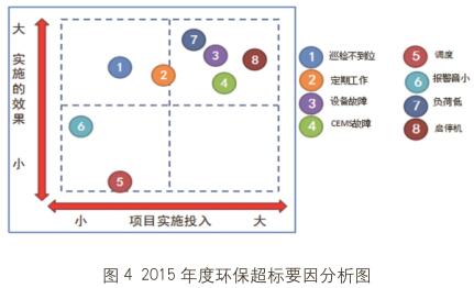 目前火力发电厂存在环保超标的原因大多集中在机组启停、负荷低等阶段。为最大限度地降低环保超标时长及浓度,我公司应用精益管理工具进行诊断环保超标的原因,并提出改进建议;特别在机组启停阶段进行优化,取得不错绩效。 三项污染物超标原因分析 现以国内某厂600MW发电机组2015年为例,进行三项污染物排放超标的原因应用精益诊断工具进行真因分析。 三项污染物超标情况分析 烟尘:2015年全年烟尘小时均值超标52小时,主要原因是:机组启停过程超标31小时、负荷低氧量大超标9小时、高压柜故障及负荷波动超标4小时、CEMS表计故障超标8小时。 从图1可以得出,今后运行人员提高运行监视质量,配煤时应关注燃煤灰分(>30%),热控专业加强对CEMS系统的维护管理,进一步减少超标小时数,提高达标率。 氮氧化物 2015年全年氮氧化物小时均值超标139小时,其中主要原因是:因机组启停过程超标57小时、负荷低(#2机组1.1负荷低、1.14 2B风机故障、3.18空预器故障)超标67小时、喷氨调门故障超标3小时、CEMS表计故障超标12小时。 2016年主要工作:一是加强对机组启停过程烟温等工况的控制,逐步减少超标次数;二是今年发生非环保设施造成的较严重超标现象,锅炉、汽机、电气、燃料等专业的人员需要提高环保意识;三是热控专业对CEMS系统管理要标准化、精细化,进一步减少因表计造成的超标现象。 二氧化硫 2015年全年二氧化硫小时均值超标6小时,主要原因是一季度排口表计故障超标2小时、浆液泵故障及运行操作4小时。2016年度发电部要加强脱硫运行监控、设备部做好CEMS表计维护工作,杜绝二氧化硫超标现象。 要因分析 对2015年度环保超标排放涉及到原因进行分析,如图3所示。 用波士顿图进行要因确定,如图4所示。 由图4可以确定,可行性提高要因是3、4、7、8,再统计2015年造成超标原因,按超标时长进行要因再签定。 从图中可以看到,污染物超标大多发生在启停阶段、低负荷阶段和CEMS仪表故障,因此,通过超低排放技改、全荷脱硝、优化机组启停及加强CEMS仪表维护来降低污染物排放的小数。 要因改进建议 要因1:启停机环保超标 改进建议: 摸索脱硝催化剂在低温条件下投运的可行性; 进行宽负荷脱硝改造。 机组启停期间环保优化措施: 机组启动阶段,分阶段控制锅炉升温升压速度及主再热蒸汽温度及压力变化速度,尽量减少锅炉从点火并网时间,具体优化措施如下: 机组启动的各个节点增加对凝水、炉水、蒸汽品质的监督化验,及时掌握水汽品质的变化,在水汽品质合格后继续下一步工作,缩短不必要的等待时间; 锅炉点火启动后,根据锅炉燃烧情况及风箱差压控制锅炉总风量,尽量降低锅炉氧量,尽快将三项污染物折算排放值降低至考核值一下,减少考核时间。 脱硝系统的优化措施: 机组启动过程中制粉系统按A、B、D顺序进行启动,提高脱硝反应器入口烟气温度,提前投入脱硝系统,减少因超标排放导致考核; 机组停运过程中,合理控制各煤仓煤位,在停炉过程中能保持制粉系统连续稳定的停运,缩短烧空仓的时间; 机组并网后,控制锅炉总风量。目前总风量1000t/h,降至900t/h左右; 机组并网前,适当延长暖机,充分暖机,提高锅炉蓄热,同时保证并网可快速带负荷; 点火后逐渐将旁路开至60%,增加锅炉蓄热,保证并网后快速带负荷。 脱硫优化措施: 点火之前,投运一台浆液循环泵、启动电除尘三、四电场高压柜; 并网前,投运电除尘一、二电场,启动第二台浆液循环泵和第一台氧化风机; 机组并网后启动第三台浆液循环泵,如果烟尘依然不合格,继续启动后续浆液循环泵,如果启动5台浆液循环泵烟尘仍超标,恢复两台循环泵; 机组负荷大于400MW,启动第二台氧化风机。 电除尘优化措施: 点火之前,投运电除尘三、四电场,火花模式,二次电流40KV,二次电压400mA,时控振打; 并网后,立即投运电除尘一、二电场,火花模式,二次电流40KV,二次电压400mA,火花率上限60; 机组负荷大于400MW改电除尘供电方式为脉冲模式,导通角80,二次电压小于72KV,二次电流小于1100mA,火花率60。 要因2:负荷低环保超标 负荷低多是重要辅机发生故障引起的,为此需要从以下几个方面进行改进:提高重要辅机预防性维护、检修水平,逐步完善检修文件包;提升检修管理:对现在点检管理(巡检管理)标准开展头脑风暴会,进行修订;对设备状态进行评估,按设备重要性及健康进行排序,合理安排巡检周期、关键巡检点;针对检修人员老化,要进行针对性培训(如现场操作性培训)工作,提高巡检、消缺技能;对检修班组有效劳动进行评估,查找原因,制定改进方案;从选人、选点、选项、选时、选标、选法、选路入手,提升检修工作标准化水平。 此外要不断优化运行方式,如在A原煤仓加点火煤的基础上,B、D原煤仓,加入煤场内含硫量较低的煤种,确保低负荷时有效降低SO2排放。 要因3:设备故障引起烟尘超标 设备故障主要是:电除尘器的高压柜故障退出及CEMS装置故障。 高压柜跳闸主要是整定值漂移造成的,目前电厂正采取措施进行调整,如不能彻底解决可以通过改造解决; CEMS装置要通过加强日常维护保养、保证启停阶段检查和旁站加以解决。热控专业对CEMS系统管理要标准化、精细化,进一步减少因表计造成的超标现象。 取得绩效 启停阶段防止污染物超标效果显著 控制氧量,降低NOx和烟尘折算值。机组并网后,锅炉总风量保持在900-1000t/h左