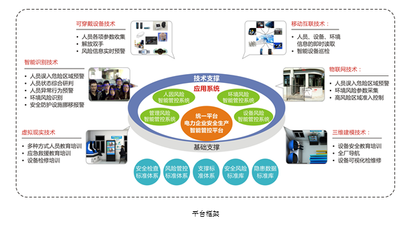 继李克强总理签批、国务院印发《关于积极推进“互联网+”行动的指导意见》后,在今年“两会”上,“人工智能”第一次出现在政府工作报告上。随后,国务院印发《新一代人工智能发展规划》,提出大力发展智能企业的规划,标志着人工智能的发展成为国家战略。 “大规模推动企业智能化升级······推广应用智能工厂,实现生产设备网络化、生产数据可视化、生产过程透明化、生产现场无人化,提升工厂运营管理智能化水平······” -《新一代人工智能发展规划》 面对正在兴起的人工智能浪潮,各大电力企业如何占据行业发展制高点,采用人工智能技术实现本质安全型企业建设? 基于物联网、移动互联、大数据分析、视频智能识别、虚拟现实、可穿戴等新技术,博晟安全技术股份有限公司搭建了电力企业安全生产智能管控平台,帮助电力企业实现本质安全型企业建设。 博晟安全技术股份有限公司搭建的电力企业安全生产智能管控平台,形成了涉及人员、设备、环境、管理安全风险的“四大智能管控支撑”,具体的功能有: