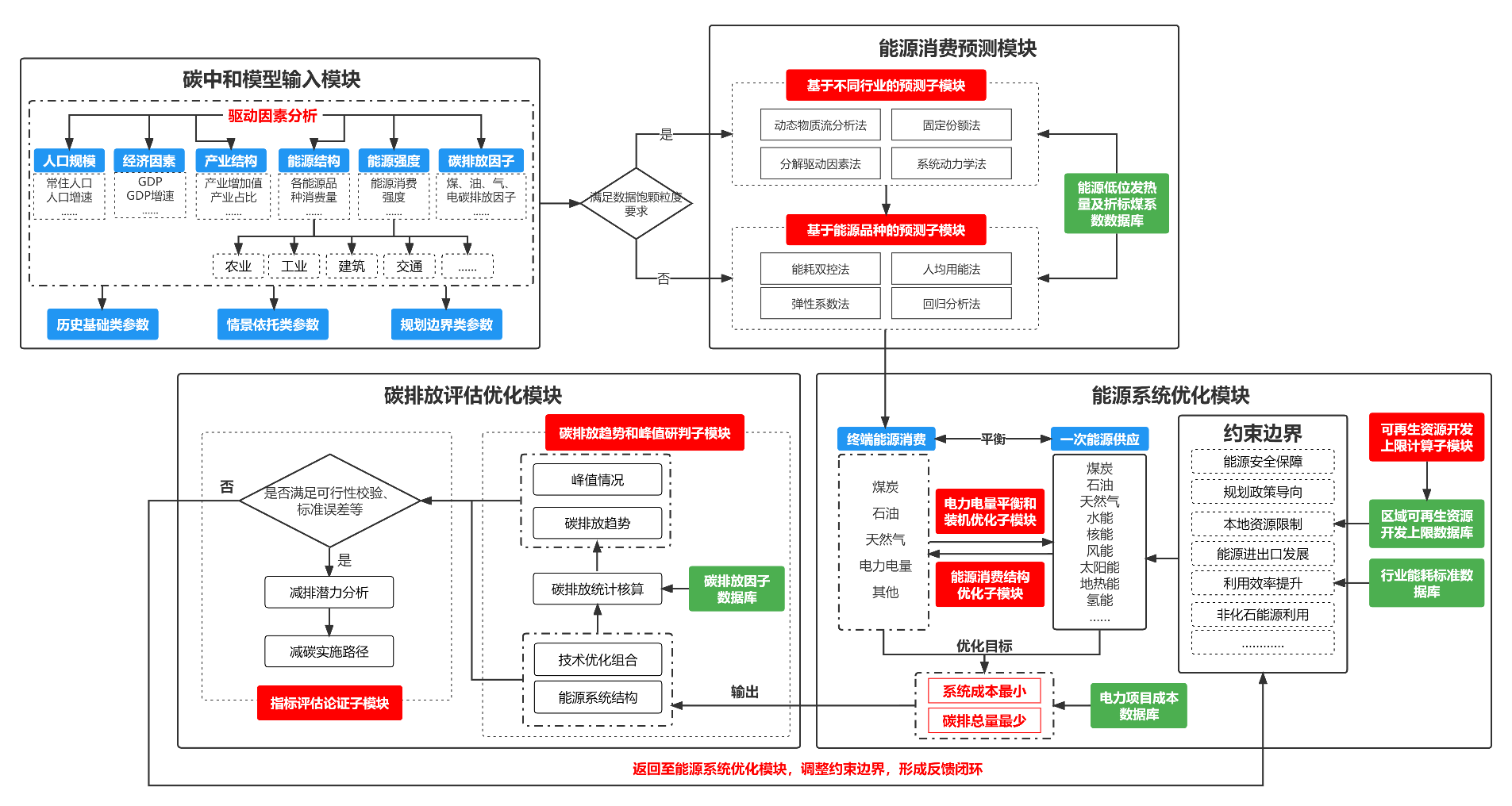 图2企业能效碳效对标功能流程 碳预测:集成行业领域分析法、KAYA分析法和弹性系数法以及具有自主知识产权的混合优化预测模型等多种模型算法,结合湖南省自身社会经济和环境发展状况,研判中长期经济发展、能耗水平、可再生能源发展,动态生成多维情景,科学合理预测全省碳达峰年份及峰值水平。